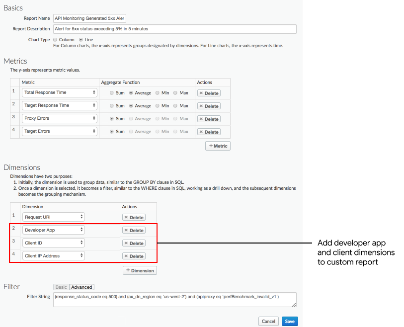 De manera opcional, genera un informe personalizado para identificar más detalles sobre el cliente que activa los errores 5xx.