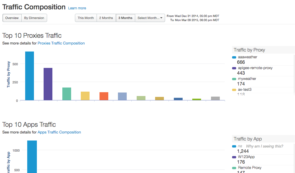 これらのダッシュボードは、API トラフィックのパターンと普及をさまざまな視点から把握するのに役立ちます。