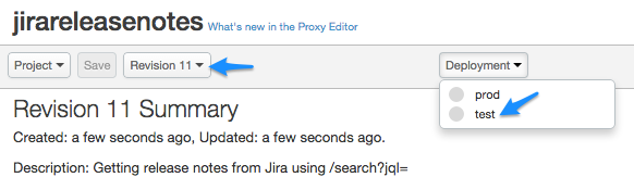 - 在 API 代理编辑器中,选择要部署(或取消部署)的修订版本。