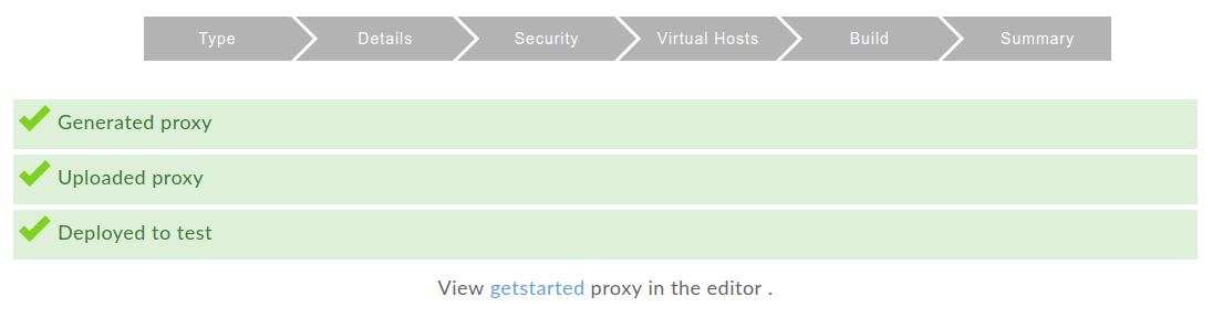 Apigee erstellt Ihren neuen API-Proxy und stellt ihn in Ihrer Testumgebung bereit: