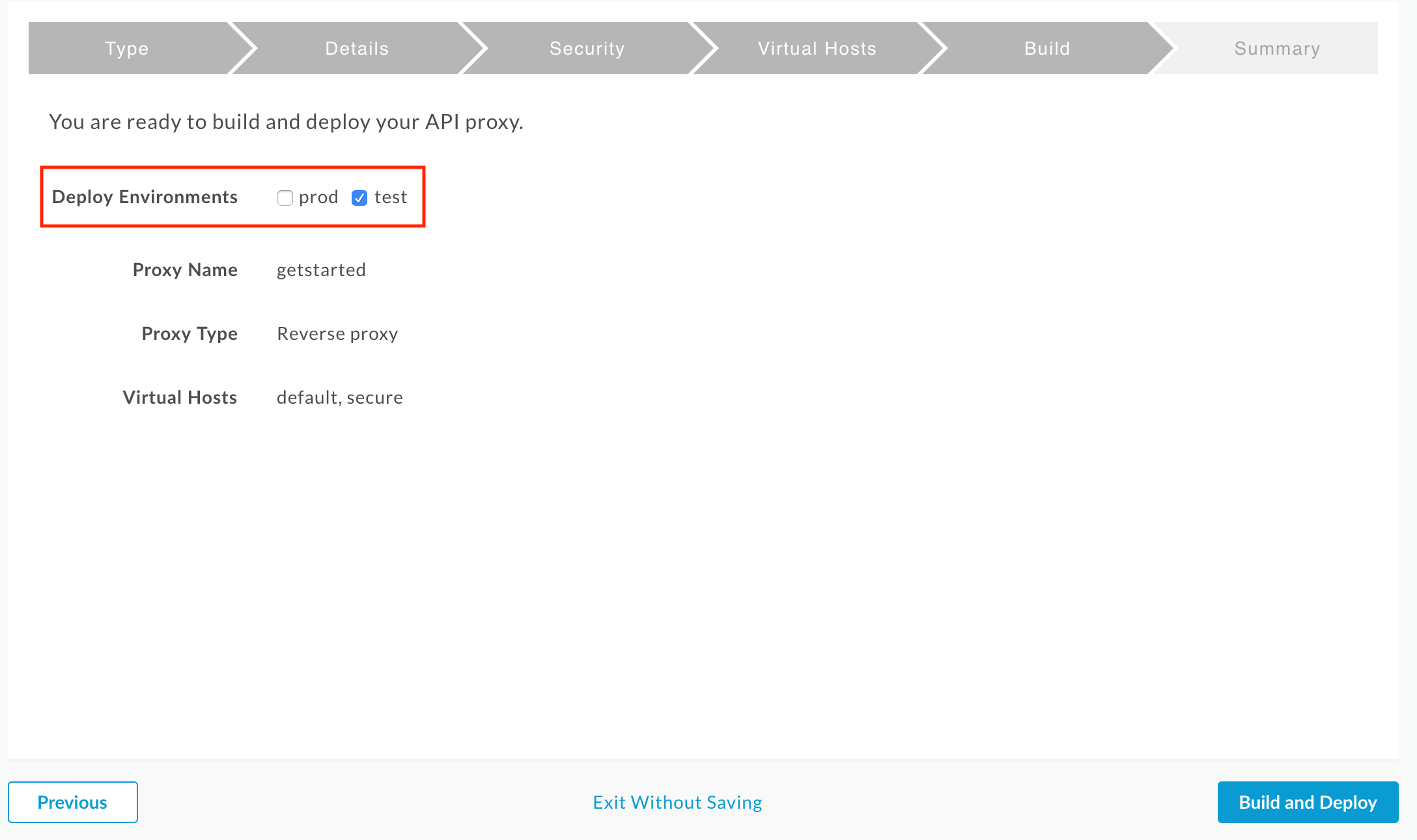 - Proxyname:Geben Sie „getstarted“ ein. Wenn bereits ein Proxy mit diesem Namen vorhanden ist, wählen Sie einen anderen Namen.