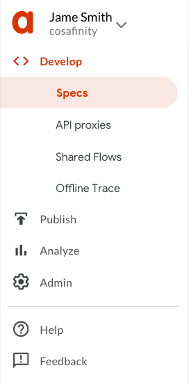 | Navigation durch die Phasen der API-Proxy-Verwaltung | Mit der neuen seitlichen Navigationsleiste in der neuen Edge-Benutzeroberfläche können Sie ganz einfach durch die Phasen der API-Proxy-Verwaltung navigieren.