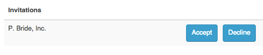 - 초대된 개발자는 회사 초대에 대한 이메일 알림을 받게 되며, 포털에 로그인하여 다음 그림과 같이 회사 관리 페이지에서 초대를 수락할 수 있습니다.