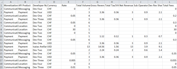 • 현지 통화: 보고서의 각 줄에 해당 요금제가 표시됩니다. 즉, 개발자가 서로 다른 통화를 사용하는 요금제를 사용하는 경우 하나의 보고서에 여러 통화가 표시될 수 있습니다.