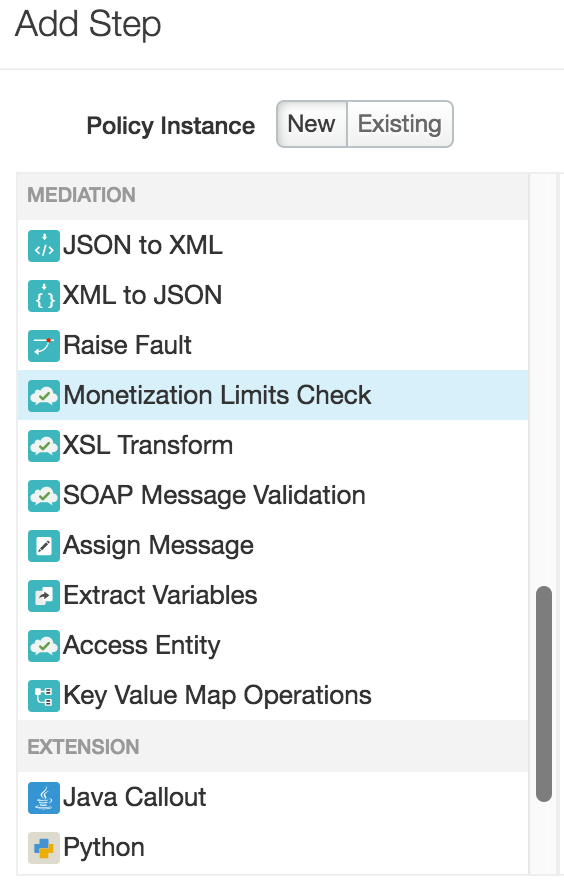 Pour ajouter la règle MonetizationLimitsCheck à un proxy d'API déjà créé: