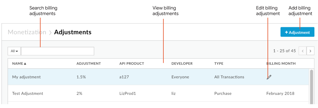 您可以向以下位置發出 POST 要求,調整帳單詳細資料: /organizations/{org_name}/billing-adjustments.提出要求時,您應在 要求主體: