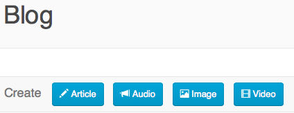 適切なコンテンツ タイプのボタンを選択して、新しいブログエントリを作成します。選択したコンテンツ タイプに応じて、次のようなエディタが表示されます。