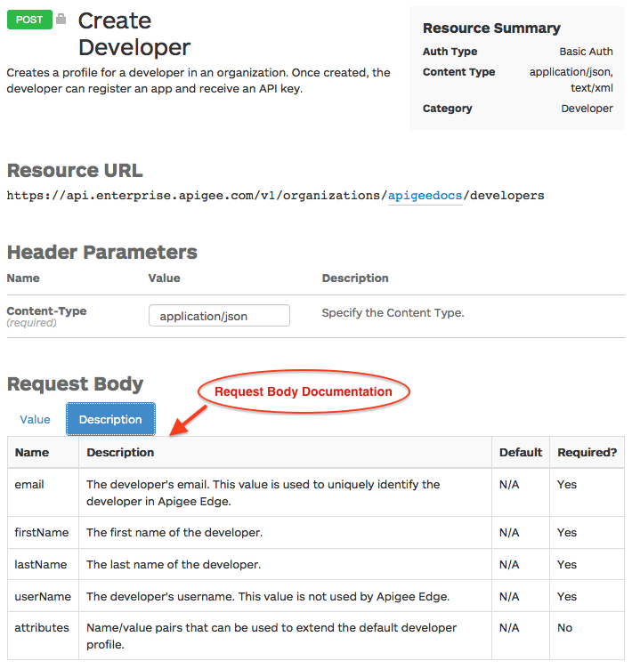 - [View API affirmation] をクリックします。このリソースの SmartDocs が表示されます。