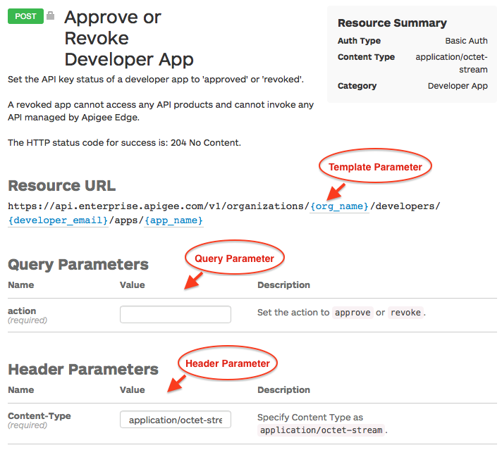 Edge 管理 API は、任意の HTTP クライアントを使用して API サービスにアクセスできる RESTful API です。Apigee では、SmartDocs を使用して、Edge 管理 API の対話型ドキュメントを作成します。こちらの API ドキュメントをご覧ください。