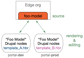 複数のポータルが組織内にあるとします(例: dev、stage、production)。Pantheon で、ポータルをある環境から別の環境に移行します。ポータルの各インスタンスには独自のモデルがあるように見えますが、実際には、すべてのインスタンスがソースモデルを参照しています。dev で API を編集すると、モデルが更新され、変更内容が production に表示されます。同様に、dev でモデルを削除すると、ソースが削除され、production で使用できなくなります。
