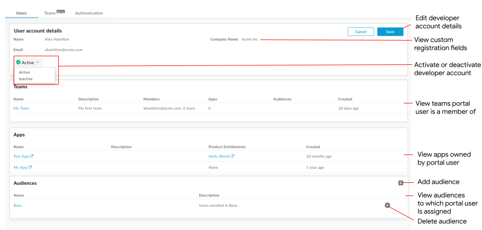 - If you have enrolled in the beta release of the teams feature, view the teams to which each portal user is a member (see Share responsibility for an app using teams (beta))