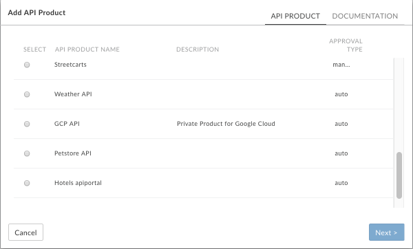 - Sélectionnez le produit d'API que vous souhaitez publier sur votre portail.