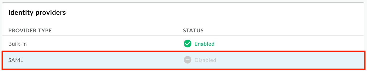 Para desativar o provedor de identidade SAML, desmarque a caixa de seleção.