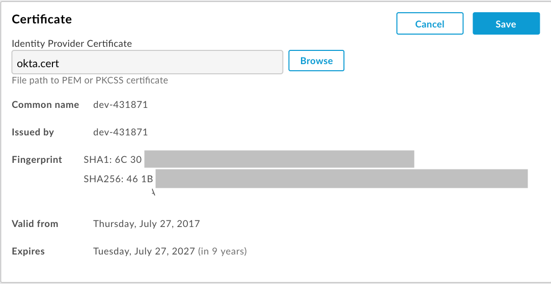 4. Configure seu provedor de identidade SAML usando as informações no arquivo de metadados do provedor de serviços (SP).