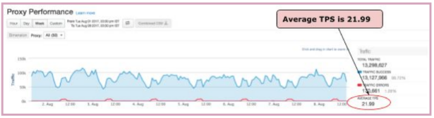 Exemplo de desempenho de proxy mostrando o TPS médio