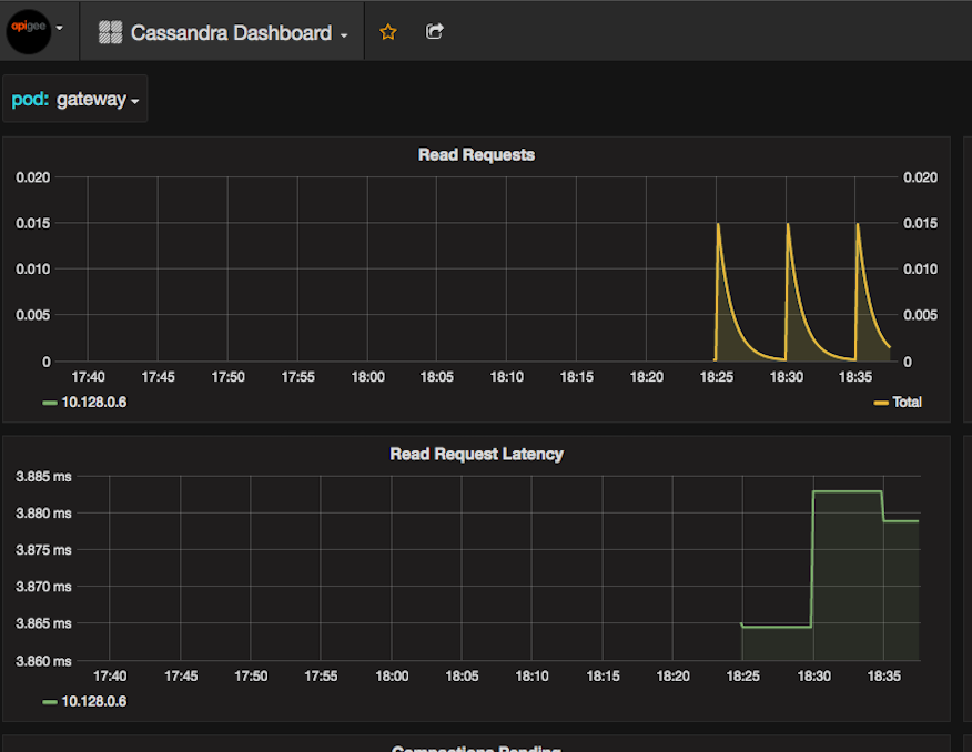 1. 若您安裝 Beta 版 Monitoring 資訊主頁,請查看 Cassandra 資訊主頁 查看「讀取要求數」顯示問題發生期間的圖表。另查看「已讀」圖表 要求延遲時間」。