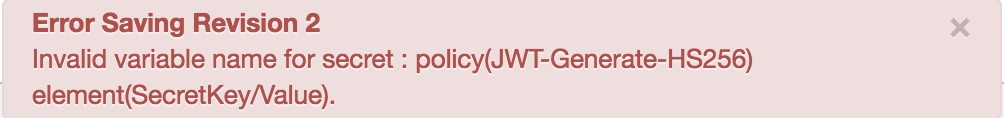 Invalid variable name for secret : policy(JWT-Generate-HS256) element(SecretKey/Value).