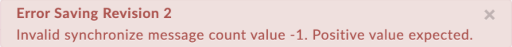 Error Saving Revision [revision number] SyncIntervalInSeconds should be a value greater than zero.