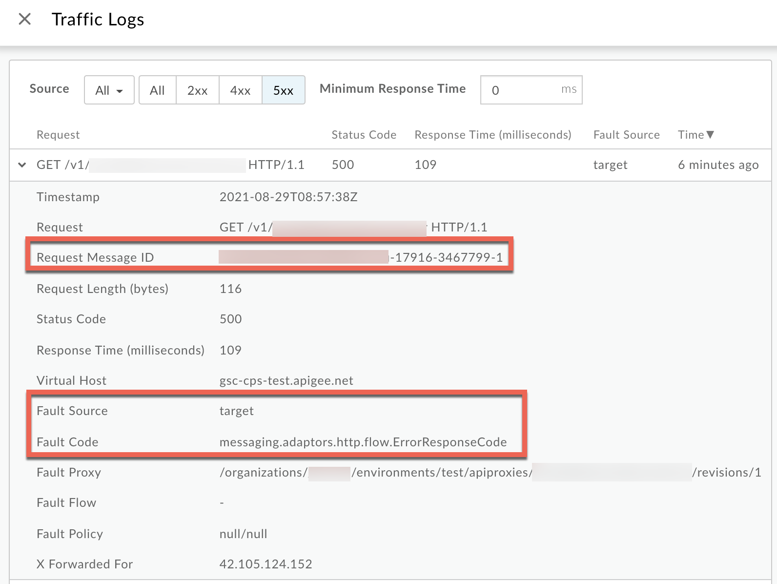 - دوِّن قيم X-Apigee-fault-code وX-Apigee-fault-code، وX-Apigee-Message-ID: