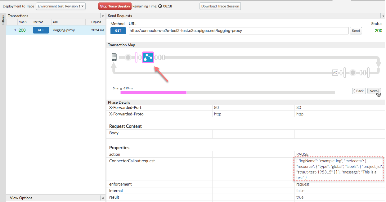- Dans Trace, suivez la progression jusqu'à l'étape d'exécution de la règle ExtensionCallout.