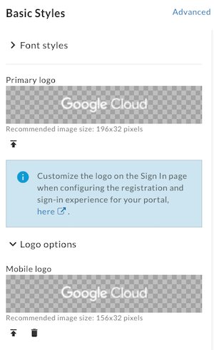 a. In Stili di base nel riquadro a destra, espandi Opzioni logo e fai clic su