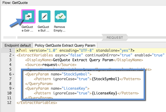 il flusso GetQuote è una buona candidata. Quindi visualizza il file XML nel riquadro Codice,