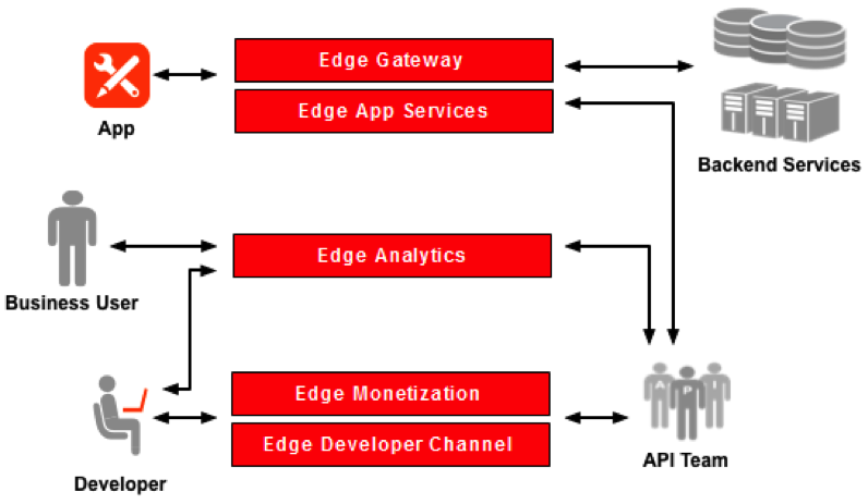 En el siguiente diagrama, se ilustra cómo interactúan los componentes de Apigee Edge: