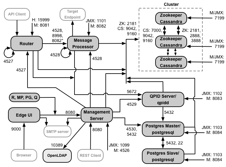 Cassandra (opcional, normalmente você usa o mesmo cluster do Cassandra para o Edge e serviços BaaS de API) |