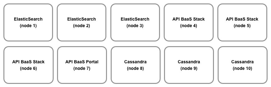 En esta situación, instalarás API BaaS en 10 hosts. Los nodos de Cassandra se pueden dedicar al BaaS de la API o se pueden compartir con Edge.
